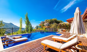 Beyaz tonların hakim olduğu, ferah ve modern deniz manzaralı villa.